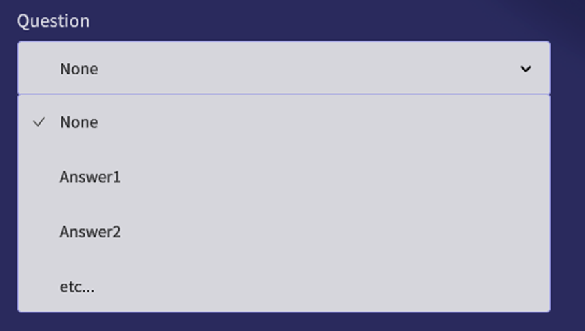 The Dropdown Survey Question type will offer the user a selection of answers in a dropdown format. To configure each available answer selection, populate the ‘Additional Data’ with each answer delineated by a comma (,). Example Below: