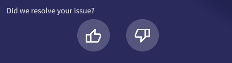 The Rating(Thumbs) Question type will offer the user with a Thumbs Up or Down selection in response to the configured question. Example Below:
