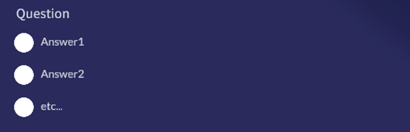 The Radio Button Question type will offer the user a selection of answers in which to select. To configure each available answer selection, populate the ‘Additional Data’ with each answer delineated by a comma (,). Example Below:
