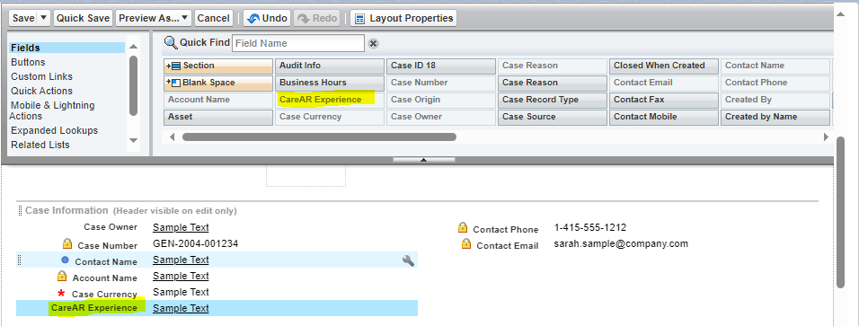 Part 2: Add CareAR Button, CareAR Experience Field, and CareAR Session Details to other Cases Page Layouts